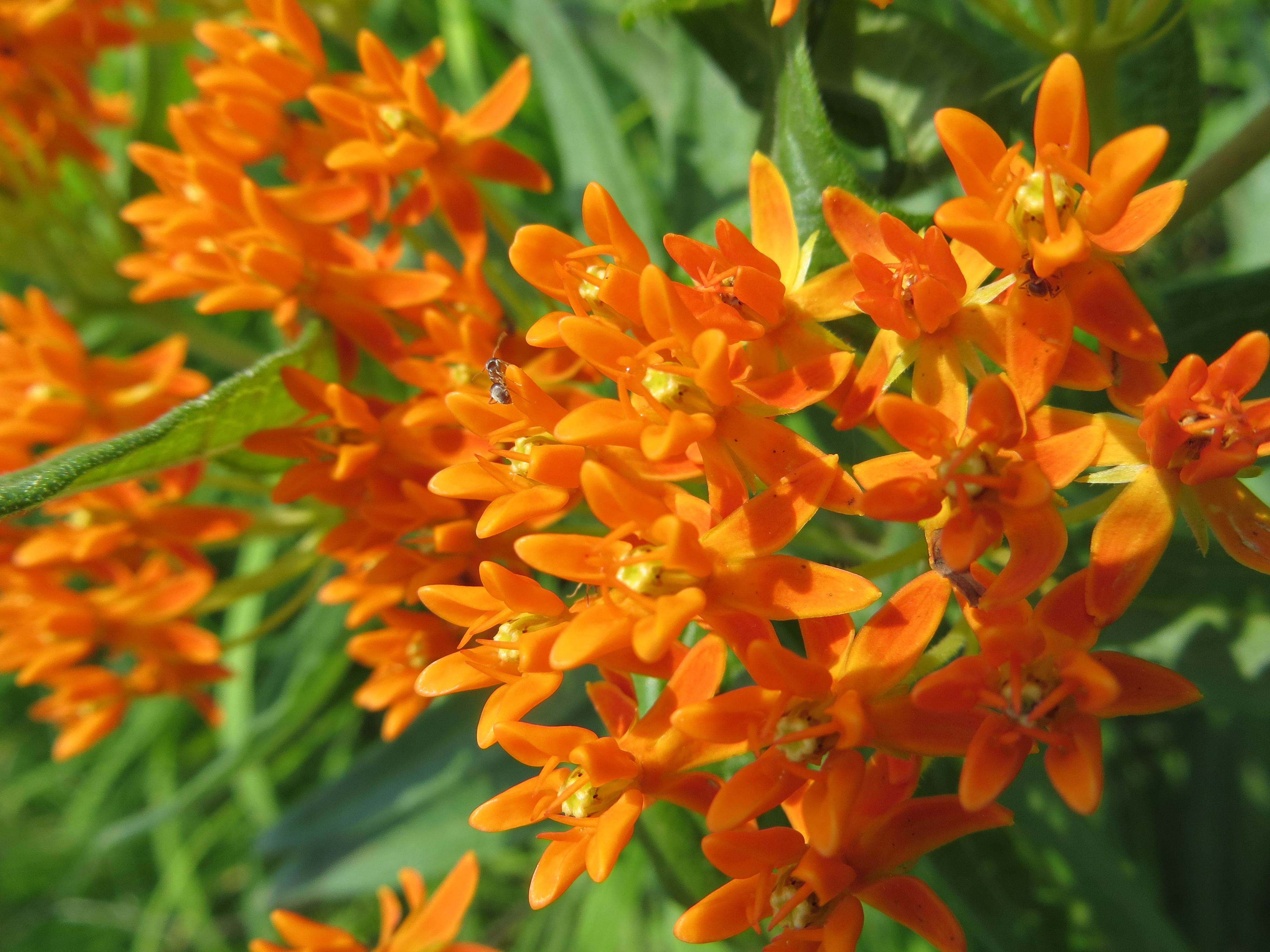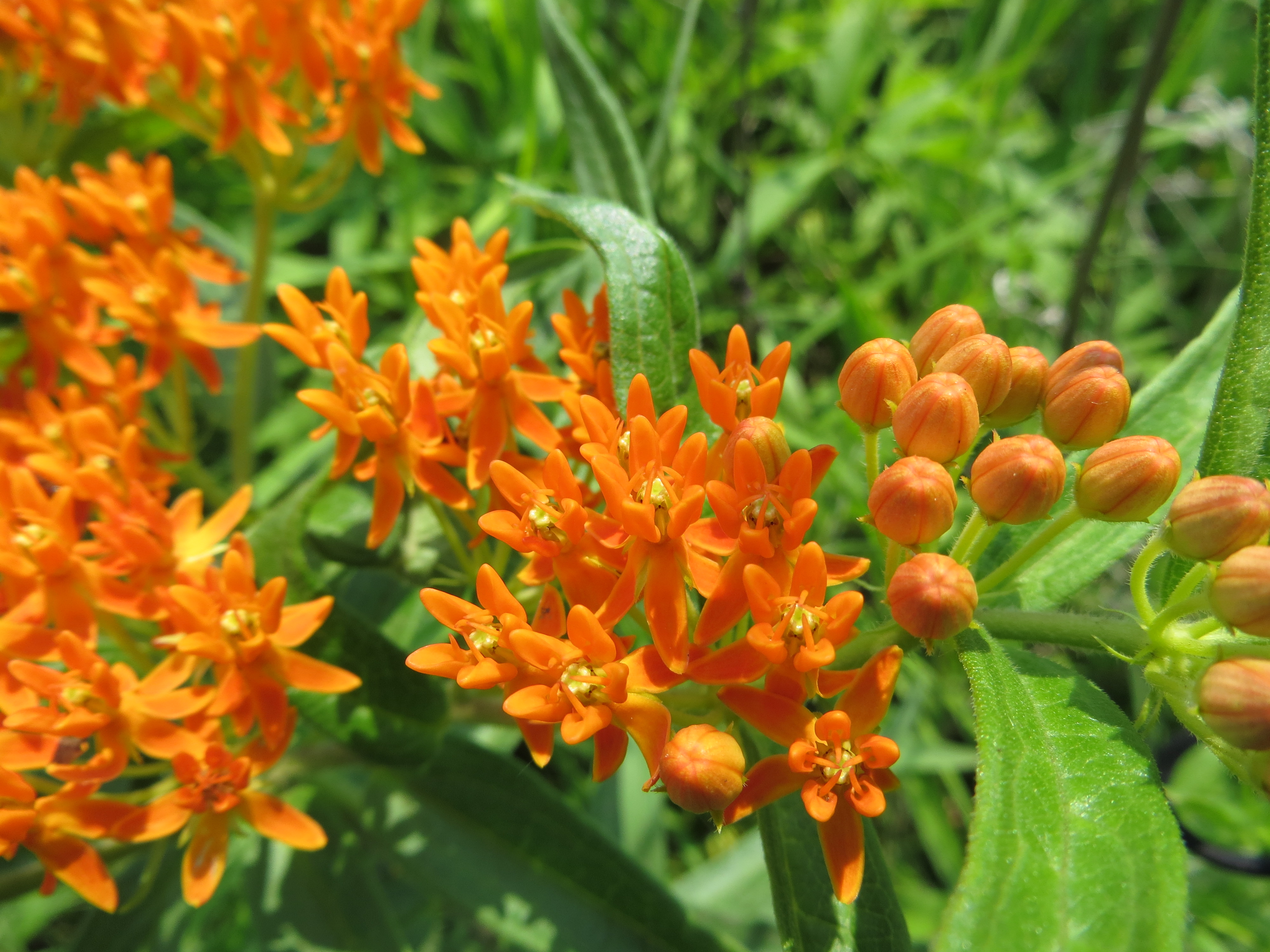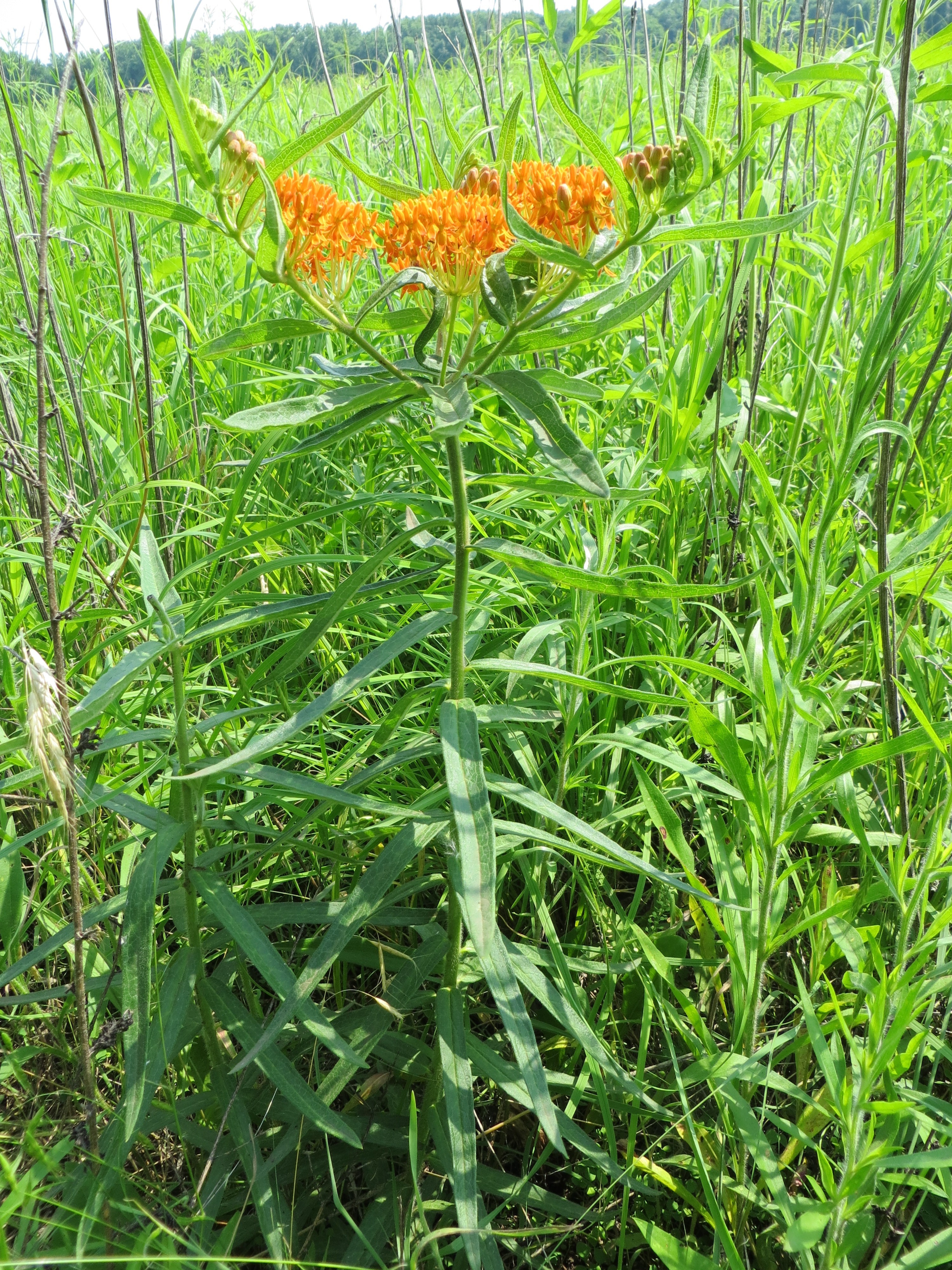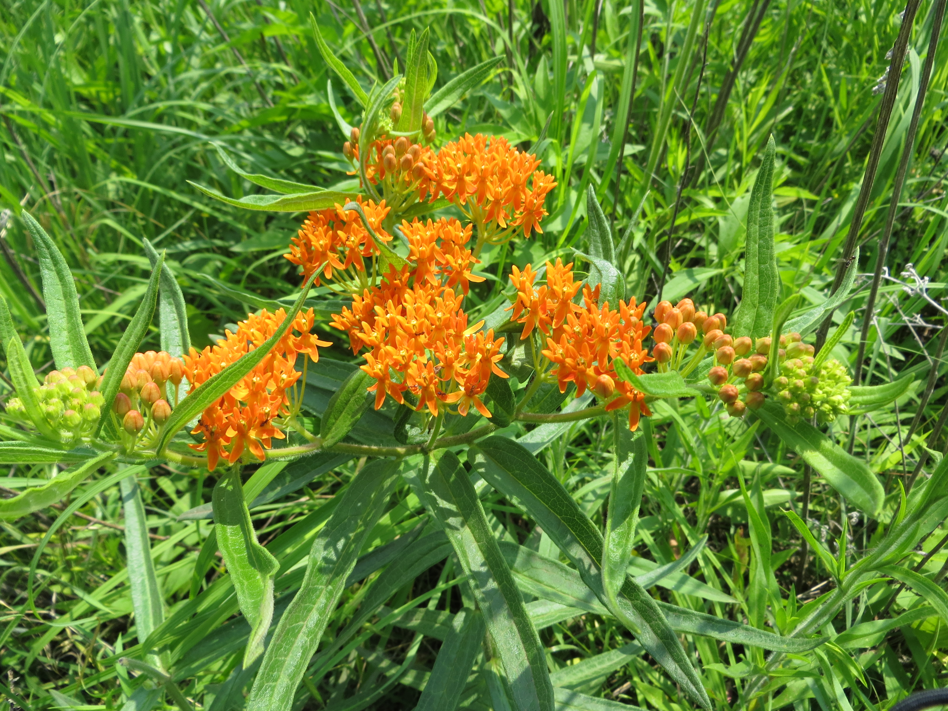A perennial with finely haired stems and toothless leaves that are 1 inch wide and 2 to 5 inches long. Unlike other milkweed plants, the stem of the butterfly milkweed is not milky when broken. A favorite with monarch butterflies, as well as bees, hummingbirds and other pollinators.