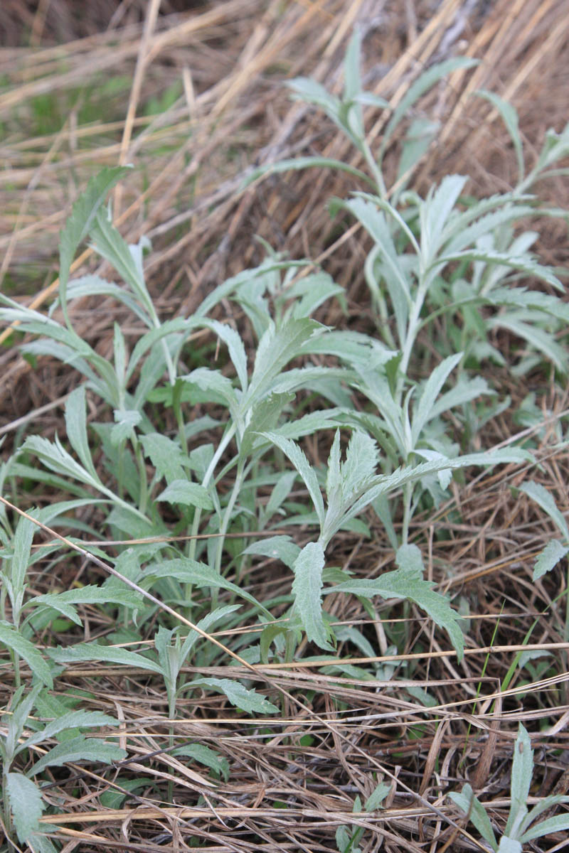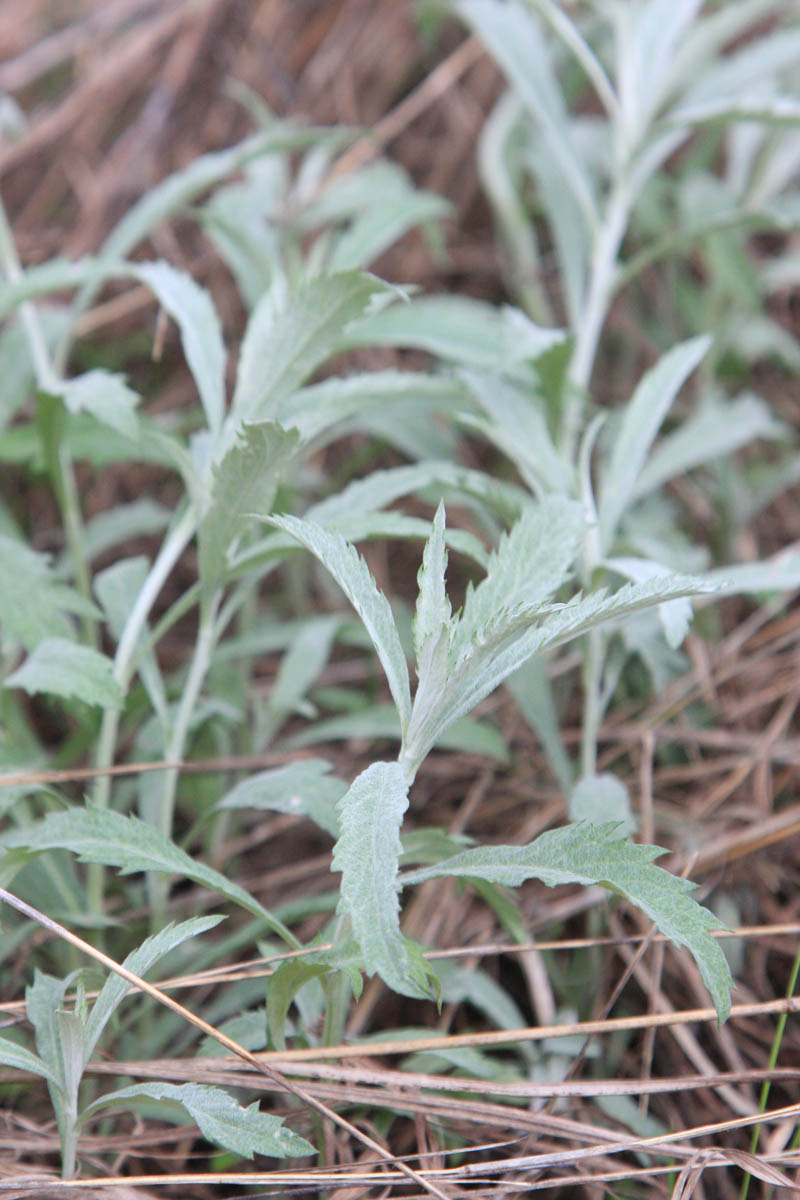 A white-woolly, perennial herb with a strong odor of sagebrush. The stems are erect and often clustered. The leaves are alternate, entire to irregularly toothed or lobed.